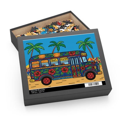 This vibrant puzzle brings a slice of Haitian street life into the hands of anyone who loves color and storytelling. Each piece fits into a lively scene: a folkloric bus bedecked in hand-painted patterns. Assemble it slowly and feel the calm focus as the colors lock together—bright turquoises, sunbaked ochres, and jewel-tone accents that celebrate craft and community. The finished image reads like a small, portable gallery you can return to again and again—perfect for quiet afternoons, shared table projects, or as a tactile way to connect with Caribbean-inspired design.